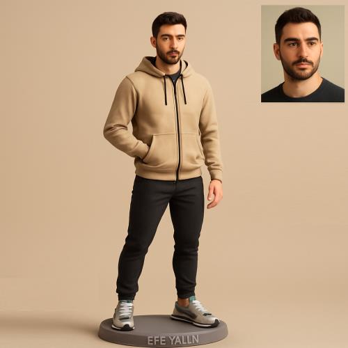 Yapay zeka ile ürettiğiniz görselleri ve kişisel fotoğraflarınızı el yapımı veya 3D baskılı, kişiye özel figürlere dönüştürüyoruz — Barbie tarzı, Actionman tarzı veya tamamen size özel minyatür heykeller.